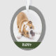 Niedlicher Hund Welpe Moderne Weihnachtsmann Foto Ornament. Niedlicher Foto- oder Haustierschmuck. Sie können es mit Ihrem Foto und Namen für Ihr Haustier personalisieren. Legen Sie Ihr Lieblings-Welpen- oder -Foto ein. Sie können dieses maßgeschneiderte Ornament für jedes Haustier verwenden. Das Dekor ist in trendigem dunkelgrün und grau gehalten. Ein toller Sake für Sie oder ein Geschenk für Ihre Familie und Freunde.