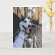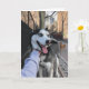 Niedlicher Husky in einem Hundepark mit Zunge aus Karte
