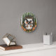 Niedlicher Igel Amid farbenfrohe Blume im Wald Runde Wanduhr