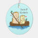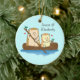 Niedlicher Igel Couple auf Holzboot Keramikornament