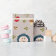 Ein niedliches Igel-Design mit Obst, Blätter und Nüssen.