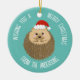 Dieser Weihnachtsschmuck zeigt eine anmutige Abbildung eines Igels, der eine rote Weihnachtsmannmütze trägt, mit einem festlichen Urlaubssegment und der Fähigkeit, sich mit Ihrem eigenen Namen zu gestalten.