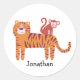 Niedlicher Individuelle Name Tiger mit Affe auf de Runder Aufkleber