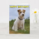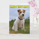 Niedlicher Jack Russell Terrier Foto Grüße Karte. Im Vordertext steht "Happy Birthday", im Text steht "Hope you have a great day!" Text kann angepasst werden.