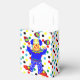 Ein niedlicher Jonglezirkus-Clown sitzt auf einer farbenfrohen Polka Dot weißen Gunst Box. Ideal für Party, vergessen Sie nicht, den Text mit Ihren Daten zu personalisieren.
