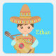 Niedlicher Junge Mexican Sombrero Hat Guitar Fiest Quadratischer Aufkleber