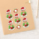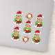 Set von sieben Vinyl-Aufklebern mit einer Illustration eines niedlichen kleinen, glücklichen hispanischen oder asiatischen Jungen mit kurzem schwarzem Haar, der in Weihnachtskleider gekleidet ist und einen roten Weihnachtshut auf grünem Hintergrund trägt; fünf Aufkleber des Jungen und zwei Aufkleber mit einem Weihnachtskranz; mit einer anpassbaren Textvorlage für Ihren Namen oder Ihre Nachricht