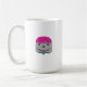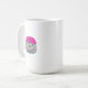 Niedlicher Junge mit rosafarbenem Haar und spieler Kaffeetasse