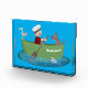 Für Wasserspass! Dieses Design zeigt einen Jungen, der sein Boot auf dem Ozean mit einem Hund und Seemann mit einem glücklichen Fisch Sprichwort hallo! Gezeichnet im niedlichen Cartoon-Illustrationsstil.