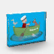 Niedlicher Junge Segelschiff und Hunderuderschiff Fotoblock