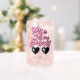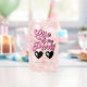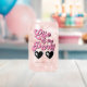 Niedliches Dosenglas für die Junggeselinnen-Abschied der Braut mit "Life of the Party" in rosa Retro-Schrift und lustigen herzförmigen rosa Sonnenbrillen. Personalisieren Sie die Lage des Party oder den Namen des Gastes in einfacher Typografie. Ein Set von 4 Dosen Brille, die eine "Ehefrau des Party" Glas für die Braut enthält, ist verfügbar (Nachricht an uns für den Link).