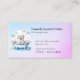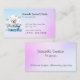 Ein charmantes und spielerisches Visitenkartendesign für Haustierzüchter, mit einem niedlichen flauschigen, weißen Jungtier mit Whirlpool. Der weiche Pastellfarbenhintergrund in Pinks und Blues verleiht der Touch eine sanfte und einladende Note, während die handgezeichnet Stilvorlage und spielerische Schriftart ihr ein persönliches, Boutique-Gefühl geben. Ideal für Hundezüchter, Heimtiersalons oder mobile Haustierpflegerinnen, die einen freundlichen und unvergesslichen ersten Eindruck machen möchten.