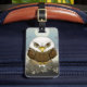 Der perfekte Gepäckanhänger für irgendeinen Tierliebhaber. Aufmachung meines niedlichen Charakters des kahlen Adlers, Baldwin, sitzend auf seiner Niederlassung in der Wintersonne unter eisigem Laub; es ist gesprungen, um ein Schlag mit den birdwatchers, Naturliebhabern und jedermann zu sein, die Lieben ein niedliches Gesicht auch diesen sind!