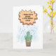Ein lustiges und humorvolles grafisches Design mit einer Abbildung von heftigem Regen, der über einen Kakteen in einem Topf fällt, der eine Sprechblase darüber hat, die besagt, dass ich gehört habe, dass du ein bisschen stachelig und blau bist, gefolgt von deiner personalisierten bald guten Nachricht. Ideal für Freunde, Familie, Angehörige und Arbeitskollegen.