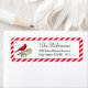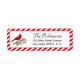 Niedlicher Kardinal stehend auf Holly-Blätter mit rot-weiß gestreiften Rahmenadressen Labels. Bilder können angepasst werden.