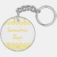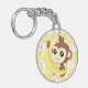 Ein sehr niedlicher und kawaii Affe, der eine Banane, den Hintergrund in den gelben Tönen und Bananenmuster. hält. Auf einem Schlüsselanhänger mit der Wahl addieren Sie Ihren Namen.