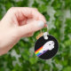 Ein niedlicher Schlüsselanhänger mit einem Siegel aus einem weißen Kawaii-Baby mit niedlichen Flossen, Schwanz und einem süßen Lächeln, das auf einem Düsen Regenbogenbrennstoff in die Luft schwebt! Ideal für Fans japanischer Pop und Kawaii Spaß.