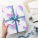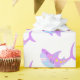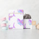Dieses lustige Packpapier zeigt ein bezauberndes Boho-Kunstwerk eines glücklich lächelnden Kawaii-Hais in Lavendel lila und Aqua Blau.