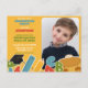 Niedlicher Kindergarten Abschlussfeier Einladung Postcard. Schulbus gelber Hintergrund mit grafischen Bildungs-Icons. Grosses zentrales Foto (Platzhalter zu ersetzen). Moderne whimsikale Typografie in mehreren Farben, die aus Kartendetails ziehen. Raffiniert und doch jugendlich. Ankündigung und Einladung des niedlichen Abschlusses. Großartige Ankündigung eines spektakulären Schrittes in der eigenen Bildungsreise.