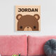 Ein niedliches Design, das Ihren Tag aufhellt. Dieses Design zeichnet sich durch niedlichen kleinen braunen Bären mit personalisiertem Namen in braunen modernen Sans Serif Schriftart Stil auf hellbraunem Hintergrund aus. Perfekt als Kinderzimmer Dekor für Jungs und Mädchen.