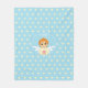 Einzigartige Fleecedecke mit einem niedlichen kleinen Engel mit rosa Herz und Herzmuster auf hellblauem Hintergrund.