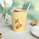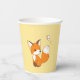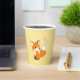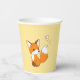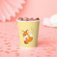 Niedlicher kleiner Fuchs sieht Schmetterling auf G Pappbecher