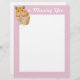 Dieser kleine Hamster ist so niedlich. Stumpf, Furry, und halten Sie eine Blume in den Händen vor einem rosa gemusterten Hintergrund. Der bearbeitbare Text lautet "Vermisste Sie" Perfect to send an jemanden während Lockdown.