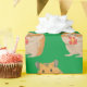 Dieser kleine Hamster ist so niedlich. Plump, Furry und halten ein Weihnachtsgeschenk in der Hand vor einem grünen Hintergrund.