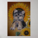 Niedlicher kleiner Hund und Sonnenblumen Poster