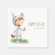 Niedliche Papierservietten für Osterfeiern mit einer Darstellung eines kleinen Kindes auf einem Hasen-Kostüm während einer Eizelljagd. Personalisieren Sie den Text mit Ihrem eigenen Text. Illustriert und entworfen von Patricia Alvarez.