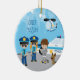 Geben Sie Ihrer kleinen Polizei oder Polizei sein oder ihr eigenes, polizistisches personalisiertes Weihnachtsschmuck! Zollferienschmuck hat zwei Polizeibeamte - einer ein Junge und einer ein Mädchen. Beide tragen eine Sonnenbrille, Hüte und Abzeichen, und einer hält Handschellen. Neben den Offizieren gibt es einen Gefangenen, einen Polizeihund und einen Polizist. Die Szene von der Luft aus zu besichtigen ist ein Polizist Hubschrauber. Passen Sie das Ornament mit dem Namen Ihres Sohnes oder Ihrer Tochter auf der Vorderseite an, dem der Text-Chef oder der Text Ihrer Wahl vorausgeht, und mit dem Urlaub und dem Jahr auf der Rückseite.