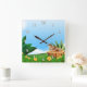 Niedlicher kleiner Vogel auf einem Feld Quadratische Wanduhr