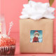 Niedliche kleine Elf, die an einem Wintertag draußen sitzt. Fügen Sie mit diesem niedlichen Aufkleber eine niedliche Touch zu Ihren Geschenken oder Weihnachtskarten-Umschlägen hinzu.