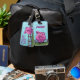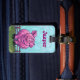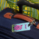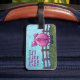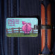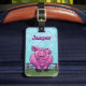 Tierparade-Schwein-kennzeichnet personalisierter vorderer und hinterer Gepäck-Umbau unser liebenswürdiges rosa Schwein, das auf einem grünen Gebiet vor einem Zaun mit einem strukturierten blauen Himmel auf der Front und dem lustigen Schwein mit einem gelockten Schwanz und allen Ihren Informationen über die Rückseite kommt und geht. Verlassen Sie Zuhause nicht ohne dieses entzückende Schwein, das Ihre Taschen im Auge behält. Fertigt verfügbares kundenspezifisch an.