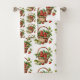 Gemustertes Handtuch Set mit frischer Sommerluft. Eine niedliche Abbildung mit frisch gepflückten Erdbeeren, die einen malerischen Korb füllen.