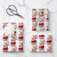 Das wiederholte Muster auf diesen Weihnachtsblättern ist ein Bild eines bezaubernden Corgi-Hundes, der aus einer rot-weißen Weihnachtsgeschenktüte herausguckt. Hinter ihm steht ein Gezeter aus heiligen und roten Beeren. Stilisierter, roter und schwarzer Büffel karierter Text sagt MERRY CHRISTMAS". Der Hintergrund auf zwei der Blätter in diesem Set ist weiß, während das dritte Blatt silber ist.