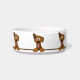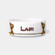 Ein niedlicher Cartoonköter mischte Zuchthund, oder poi-Hundebild wartet liebevoll mit seiner Zunge, die heraus an dieser kundenspezifischen Schüssel der Keramik Hundenahrungsmittelhängt. Es ist braun, wenn einem Ohr, das oben und ein haften, Ohr unten hängen. Es gibt 6 von ihnen fast vollständig gehend um den Teller. Es hat Raum für den Namen Ihr Hundes in der Mitte. Ersetzen Sie den Beispielnamen in der Schablone.