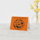 Verteile Halloween mit dieser anpassbaren Karte. Es zeigt eine Vintage Abbildung eines Jack-oder-Laternen-Kürbis in Schwarz, Creme und Orange. Der Standardtext auf der Vorderseite lautet: ICH HABE PUMPKIN GOT, UM IHNEN UND innen ZU SAGEN: HABE EINE GLÜCKLICHE HALLOWEEN! Aber Sie können die Nachricht auf der Vorderseite und im Inneren mit Ihrem eigenen Text anpassen.