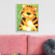 Spielvolle große Katzenkunst, entworfen von Sarah Trett. Niedlicher, weicher Tiger, großartig an der Wand eines Babys oder Kinderzimmers. Leinwand dieses niedlichen Tigers, einzigartig bemalt und entworfen von Sarah Trett.
