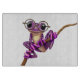 Niedlicher lila Baum-Frosch mit Augen-Gläsern auf Schneidebrett