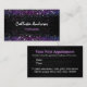 Niedliche lila schwarze Imitate Glitzer einzigartig Girly Visitenkarte. Schöne, moderne und coole Karte für den Trend-versierten und kunstliebenden angesagten Trendsetter. Dieses stilvolle, schöne Design wäre ideal für Frauen, die trendige funkelnd Designs genießen. Ob Sie ein Kosmetiker, ein Friseur, ein Künstler oder in einem anderen modernen Beruf sind, zeigen Ihren persönlichen Stil, sehen Sie modern, trendig und fühlen sich stilvoll mit einem einzigartigen Design auf Ihrer Visitenkarte oder passen Sie es über ein anderes Produkt Ihrer Wahl. BITTE BEACHTEN SIE: Dies sind flache Druckgrafiken - kein echter Glitzer, Juwelen oder erhabene Teile.