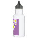 Diese bezaubernde Wasserflasche weist weiße Blume mit lila Hintergrund und einem individuellen Namen auf.