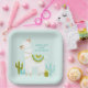 Auf dieser Paperplatte zum ersten Geburtstag werden niedliche Lama- und Aqua-grüne Kakteen-Illustrationen auf einem hellen Aquarell mit personalisiertem Text vorgestellt. Dieses Design koordiniert mit unserer Kollektion "Niedlicher Lama Spaß"! Weitere Informationen zur Koordination finden Sie in der Auflistung.