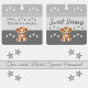 Zwei-seitige Metallschmuck. Eine Geschenkidee für ein neues Baby mit einem niedlichen Löwen, Sternen und Polka Punkten. Personalisieren mit einem Namen / shh 'baby name' schläft. Der Satz "Sweet Dreams" ist auf der Rückseite. Grau und weiß.