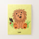 Niedlicher Löwe im Gras mit Ladybug-Kindern Puzzle