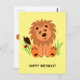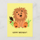 Niedlicher Löwe im Gras mit Ladybug Postkarte