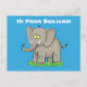Niedlicher, lustiger Elefant mit Vogel auf Cartoon Postkarte