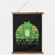Niedlicher lustiger Frosch beim Yoga. lustige Yoga Wandteppich Mit Holzrahmen
