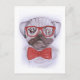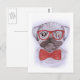 Niedlicher, lustiger Mops mit roter Brille und Bog Postkarte