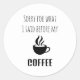 Niedlicher, lustiger schwarzer Typografie-Kaffeeau Runder Aufkleber